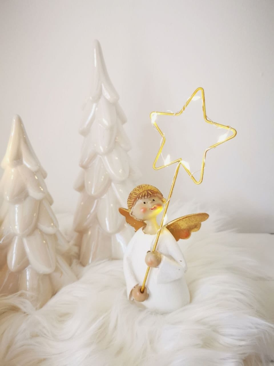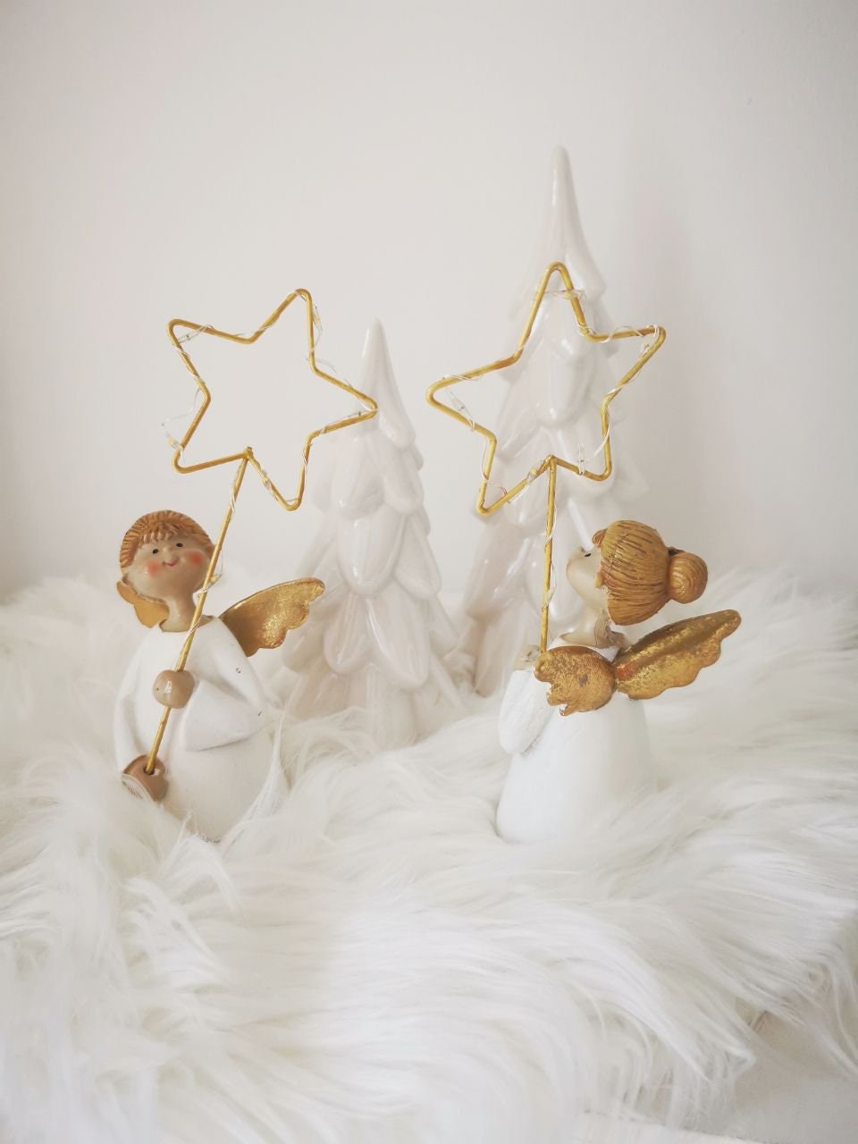 These angels fit beautifully into a Christmas decoration and with their shining star they will definitely be an eye-catcher.