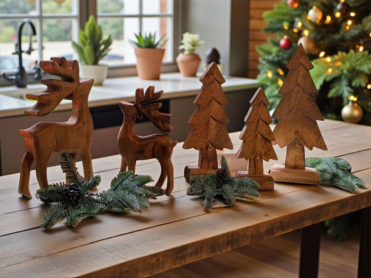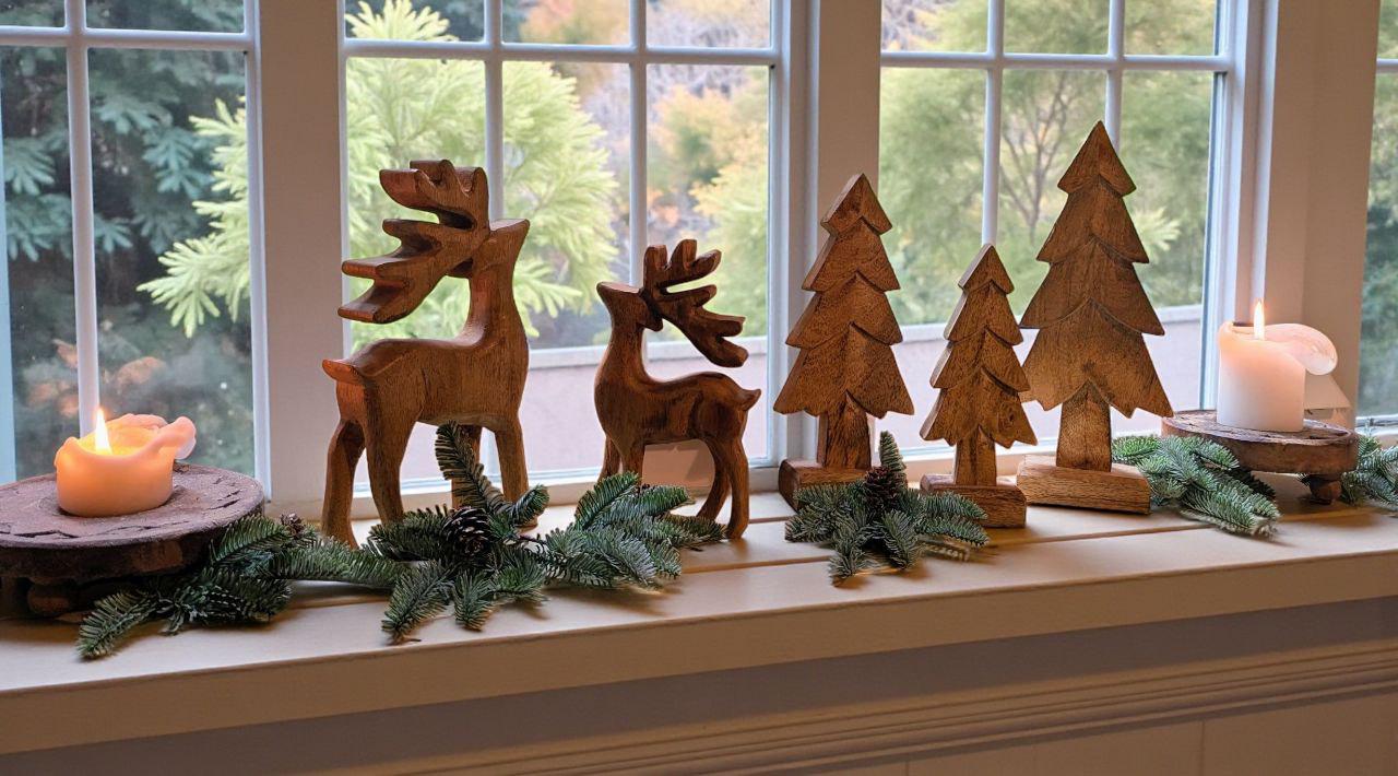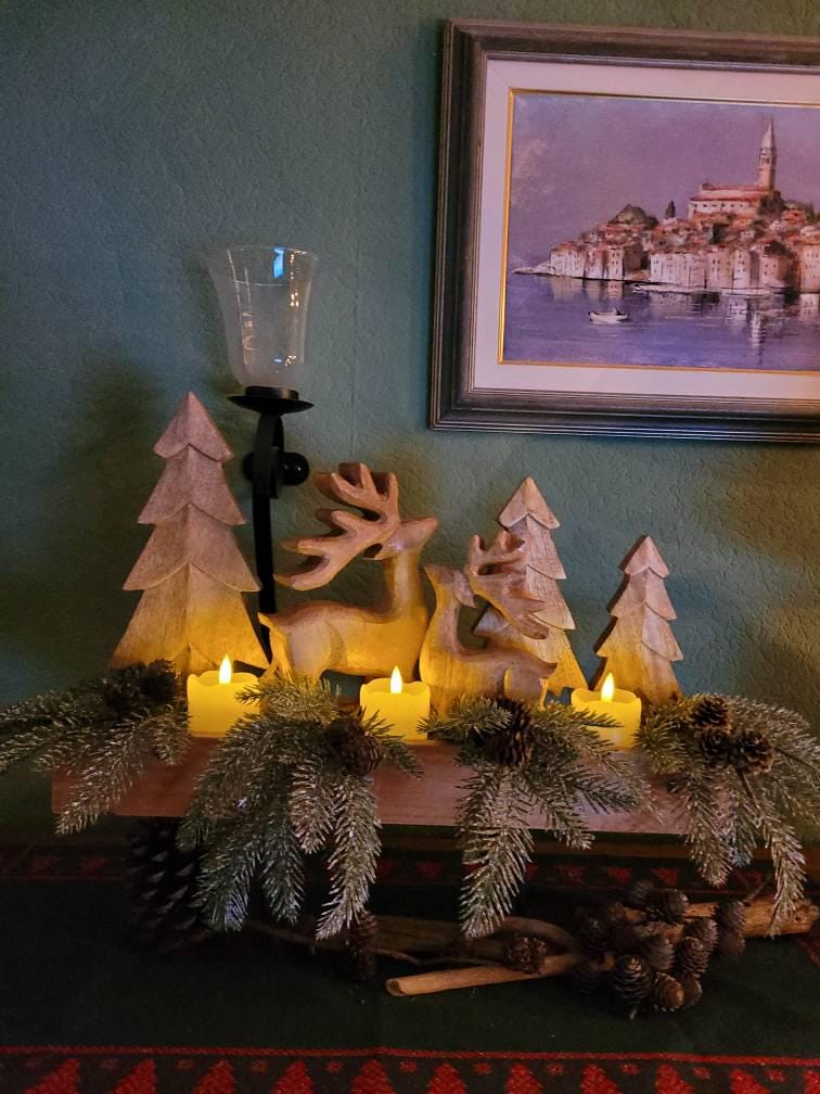 Superschönes, natürliches Weihnachtsdekorationsensemble, bestehend aus 2 Rentieren, 3 Tannen und dem Holzboard. Gerne immer wieder ein Einkauf bei diesem Shop.