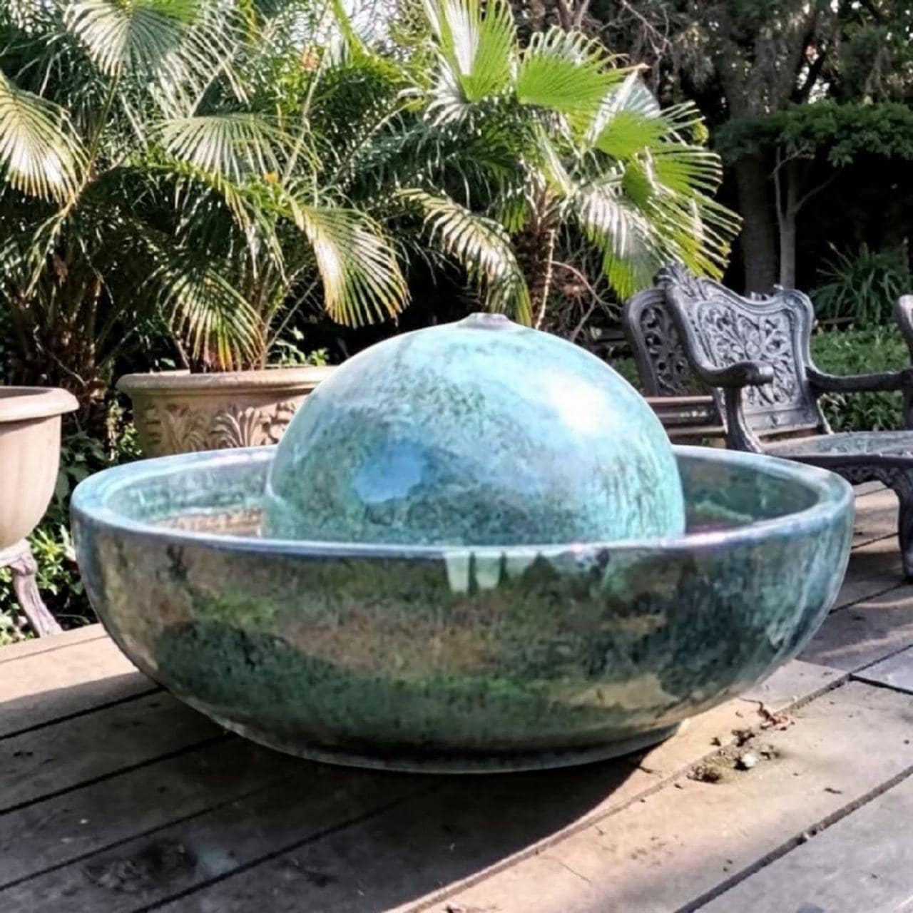 SUPER getöpfert, allerdings ist die Öffnung etwas zu klein, um die Pumpe in die Kugel zu setzen. Ich musste die Abdeckung an der Pumpe entfernen und konnte dank meiner kleinen Hände die Pumpe in der Kugel wieder zusammensetzen. Ansonsten ein tolles Teil für unsere Terrasse.