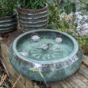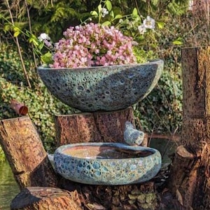 Pretty and useful garden plug in the form of a petal with two small birds incorporated. This is made of metal in a dark brown tone with a trendy rust look. Sensible for the birds and at the same time a beautiful decoration point.