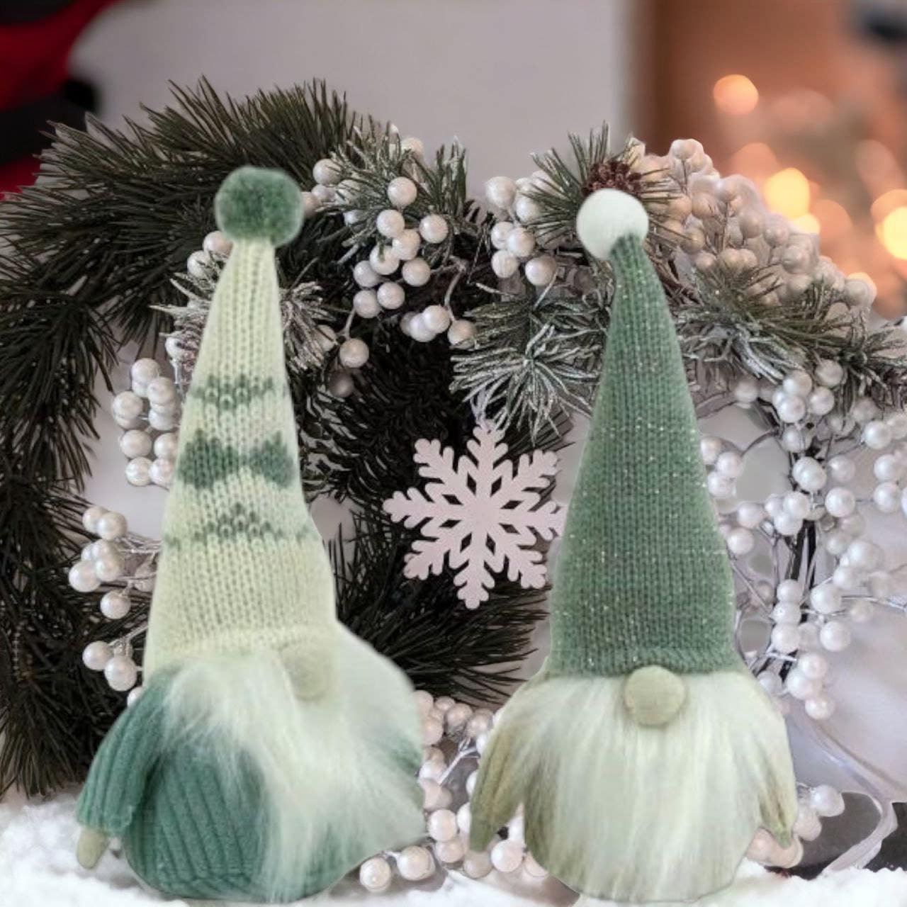 Set of 2 gnomes in cream green