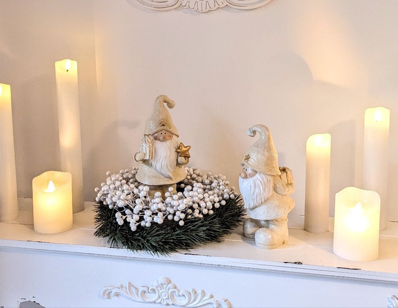These Santa Claus figures are truly eye-catching, whether adorned with candle holders, fir branches, cones, and baubles, or placed decoratively on windowsills, trays, or mantelpieces. They are available in two different designs and also look simply stunning as part of a Christmas wreath with a subtle glitter finish.