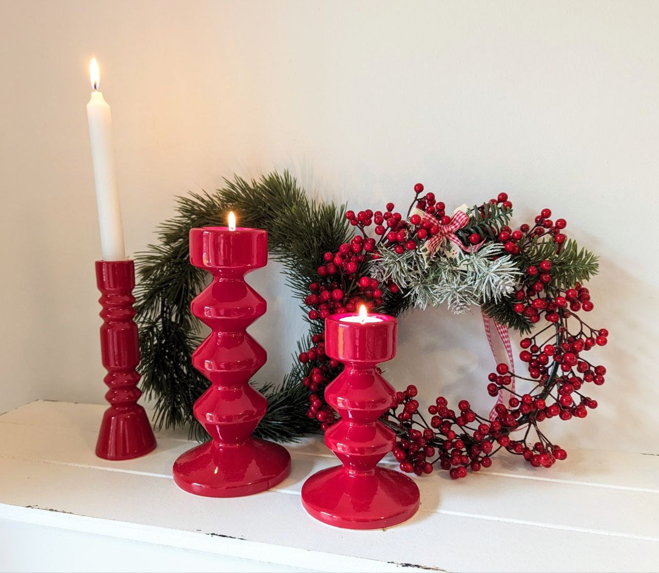 Candle holder red 3 sizes Christmas, candlestick ceramic, candlestick,