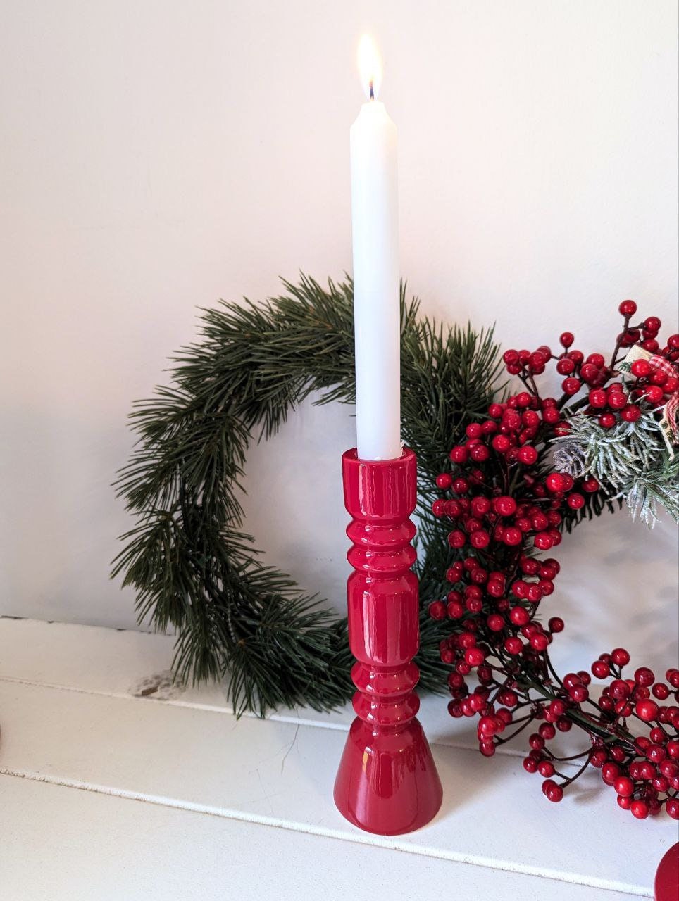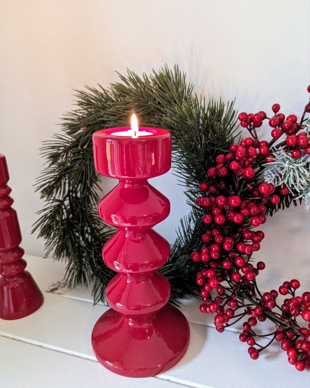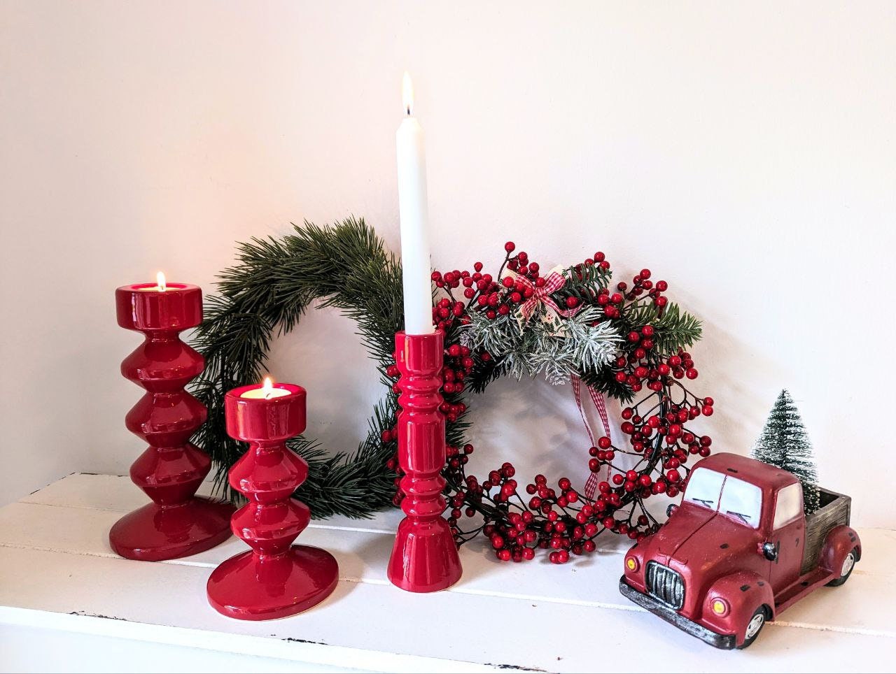 These charming red ceramic candle holders are the perfect addition to the festive Advent and Christmas seasons.