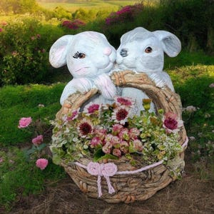 Bunny Romeo wondrously cute big in love Easter bunny made of fibreglass with intense colours and beautiful details. This one will be an eye-catcher, he is so cute and waiting for his Juliet, he should not be missing in your interior.
