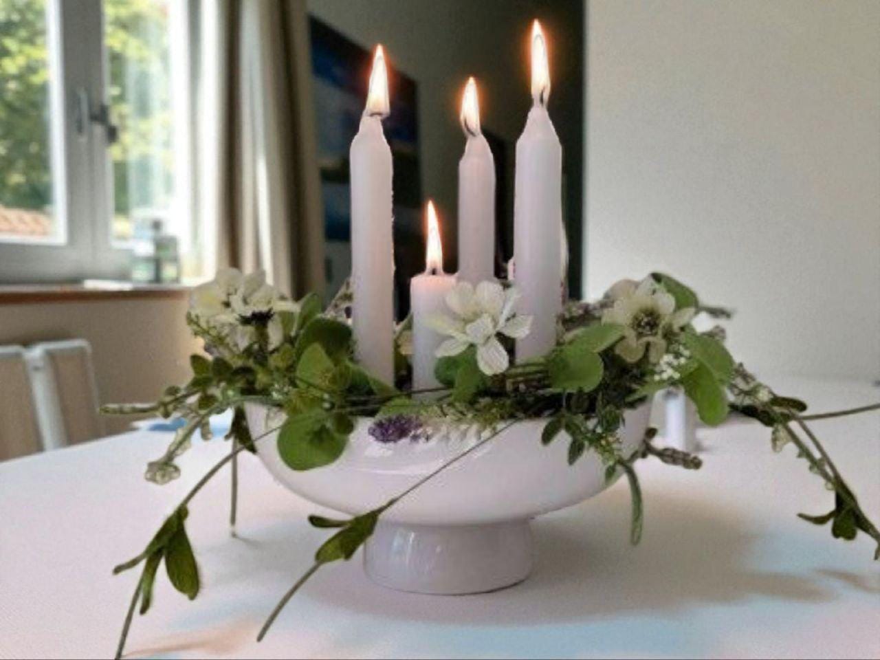 If you're looking for something special, you've come to the right place. This stylish and beautiful candle holder, handmade in white from glazed ceramic, holds four candles and can be perfectly decorated for any season. Your imagination is the limit.