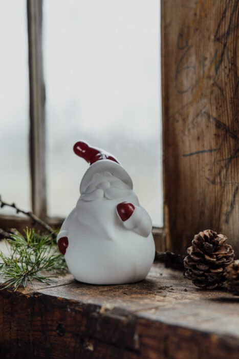A cute Santa Claus with a beard and a long pointed hat. You immediately feel good when you look at this pretty Christmas decoration and you get a great Christmas feeling. Whether in a minimalist setting, presented on a candle plate or decorated with lots of Christmas accents, e.g. our ceramic trees and light houses, this one will definitely cut a fine figure.