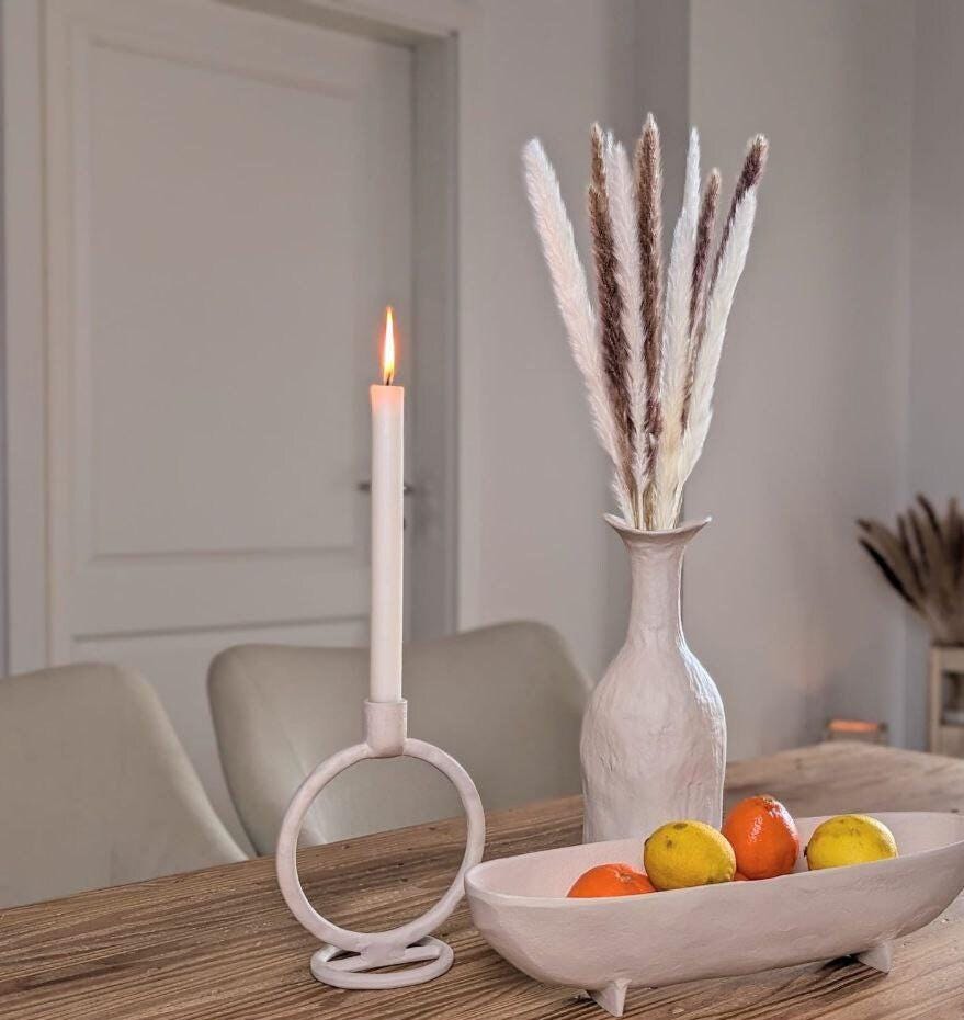 Since the candle holders are not bright white, they can be easily decorated with natural materials such as wood, etc.