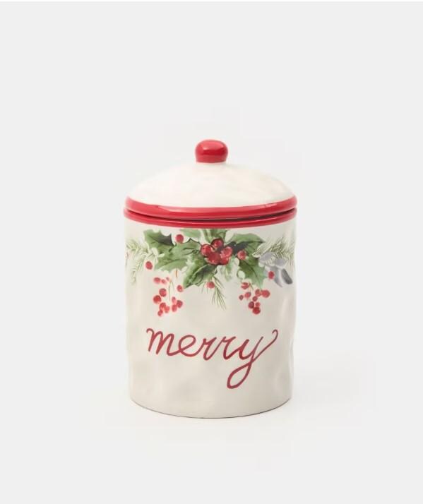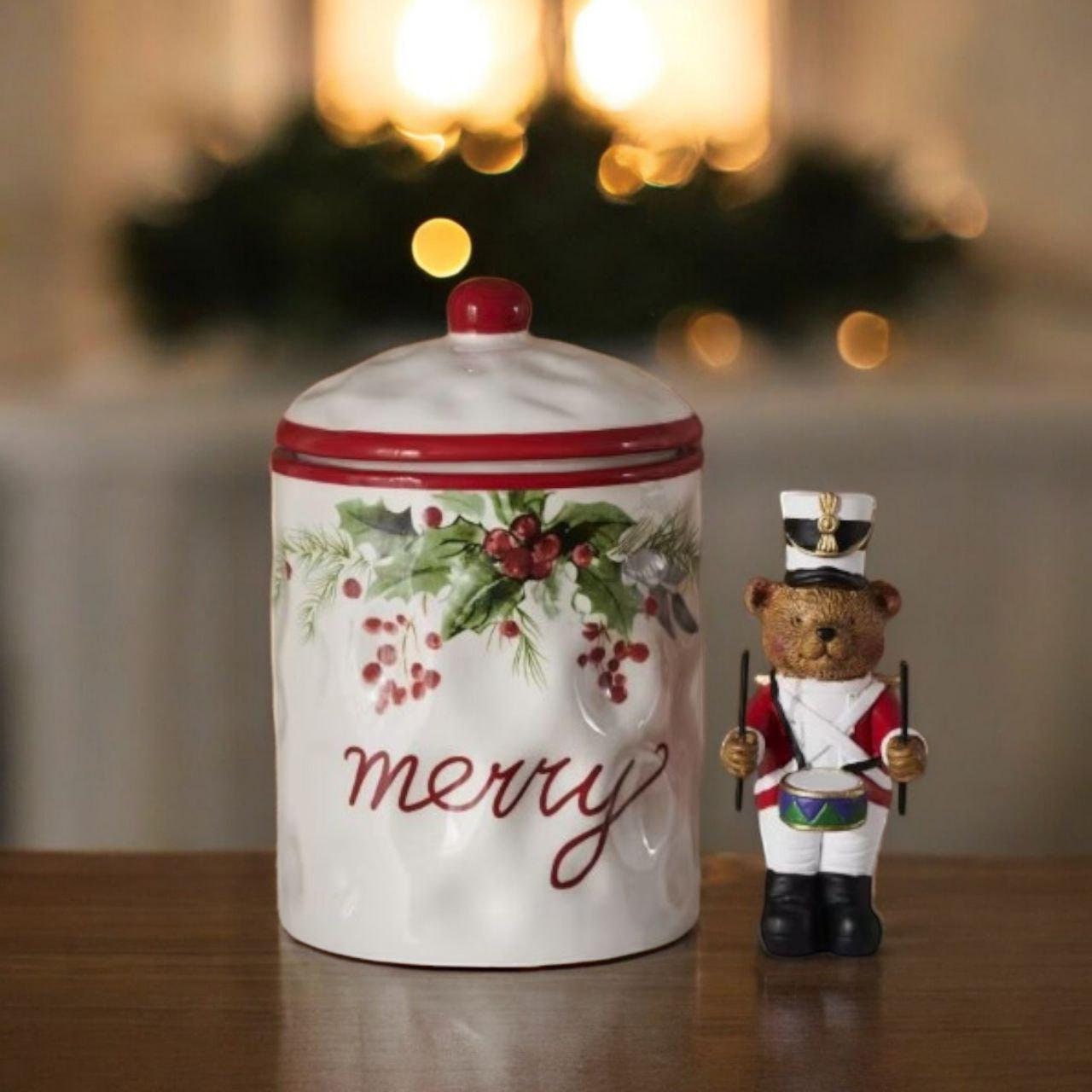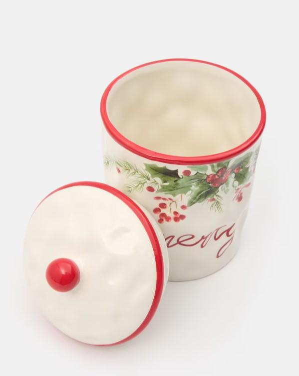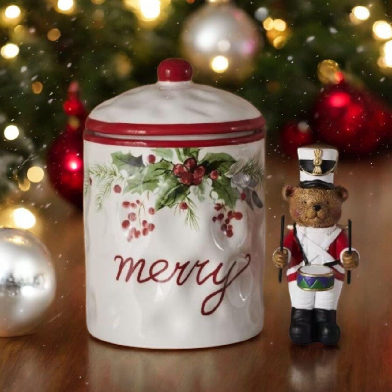 Ceramic jar XL Merry with lid, Christmas kitchen, cookie jar