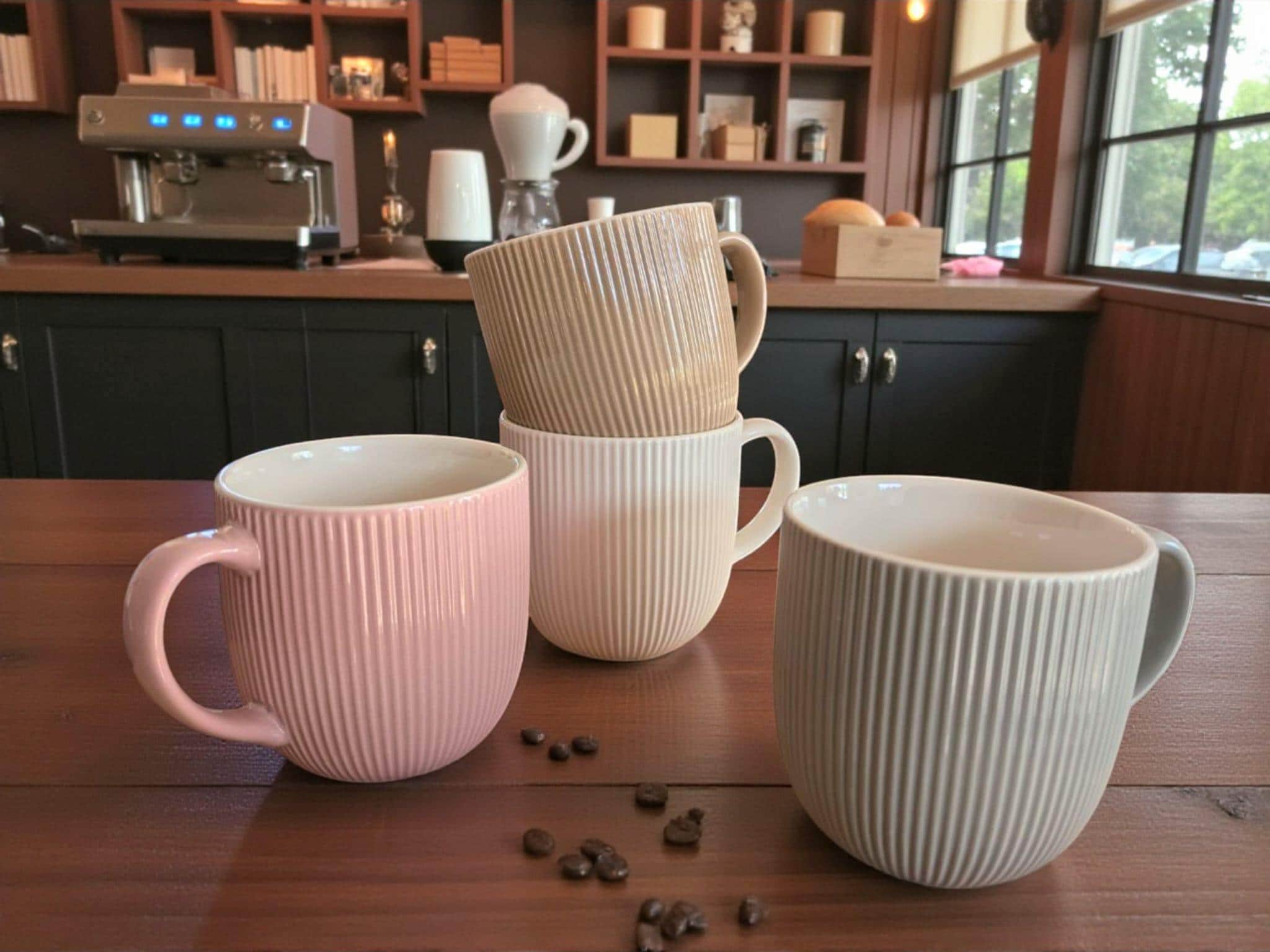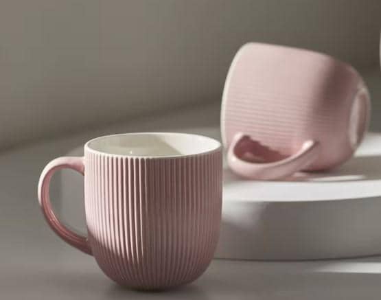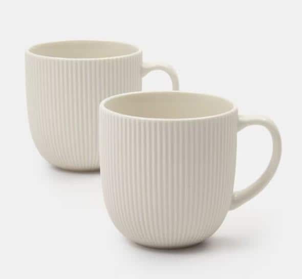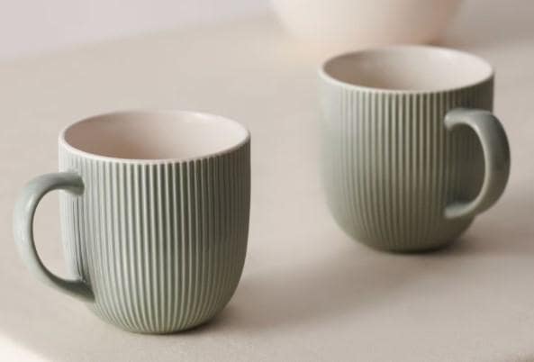 Weil die rosa Tassen so schön waren, habe ich gleich noch welche in grün und beige bestellt. Die Rippen erinnern ein bisschen an Cord-Stoff. Passen gut zu meine Kissen ;)