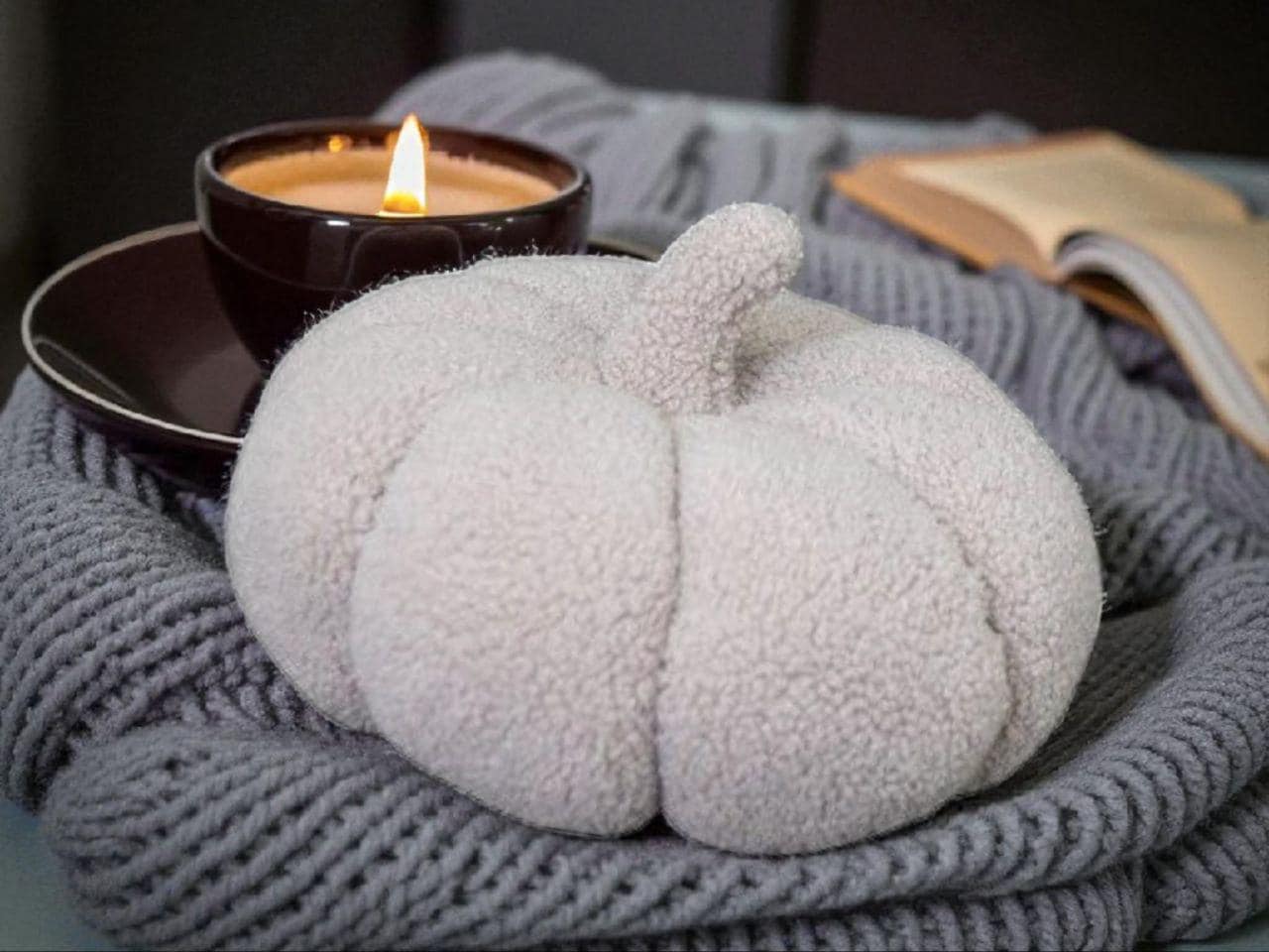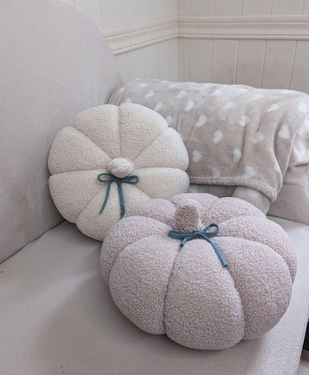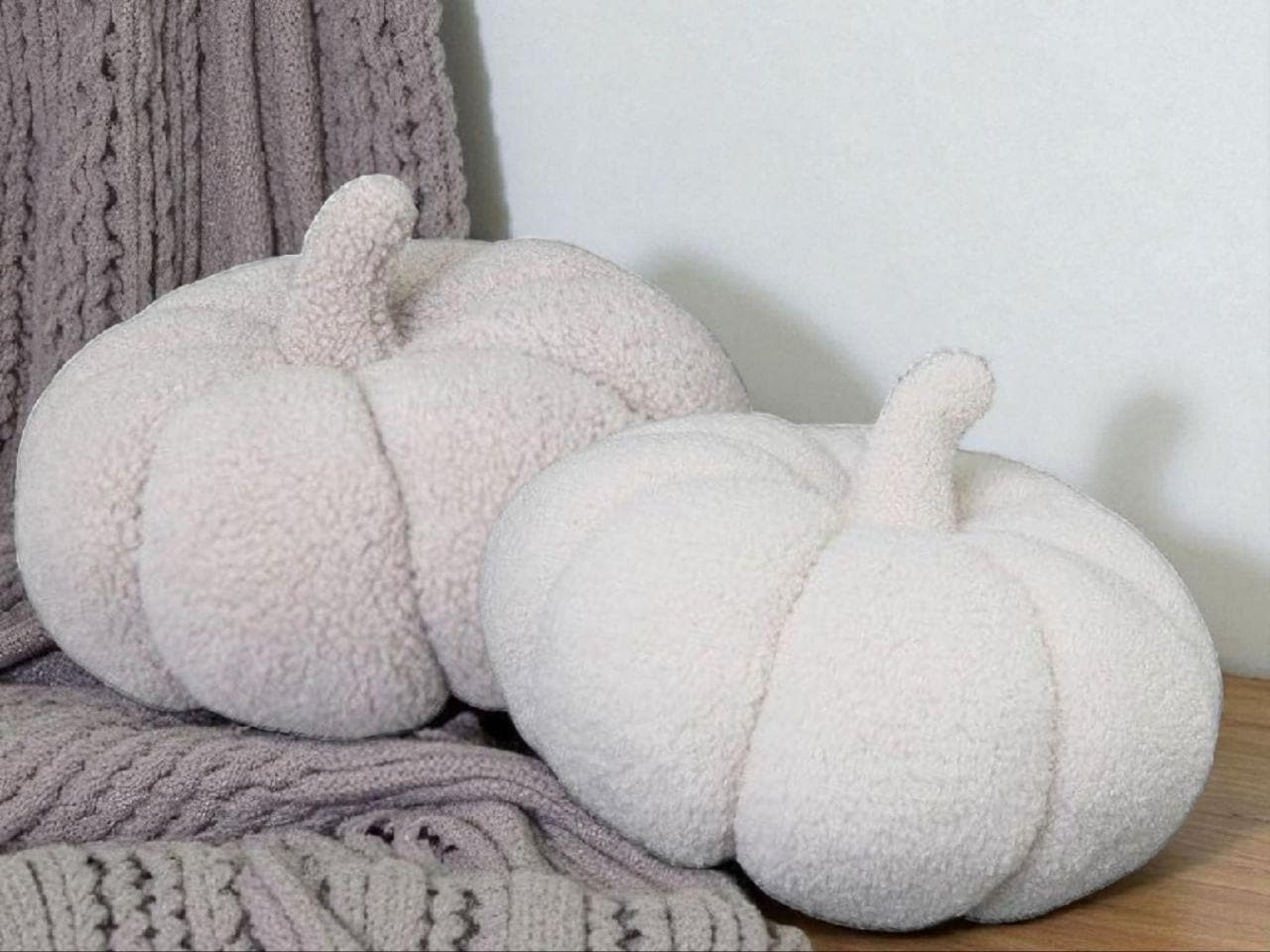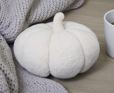 Large pumpkin decoration made of fluffy polyester – cozy & stylish This decorative pumpkin brings autumn vibes right into your home! Made from fluffy polyester fabric and available in two harmonious colors, cream and beige, it combines coziness with modern design. The polyester cushion filling makes it wonderfully soft and cuddly – perfect for decorating, but also for leaning against or snuggling up with. Whether on the sofa, in the bedroom, or as an eye-catcher on the windowsill, this pumpkin is a real highlight in the fall and winter seasons. Dimensions: 30 x 30 x 22 cm Optionally available with a knitted bow in petrol blue or without. The pumpkin is washable at 30 degrees. Cover: 100% polyester Filling: 100% polyester