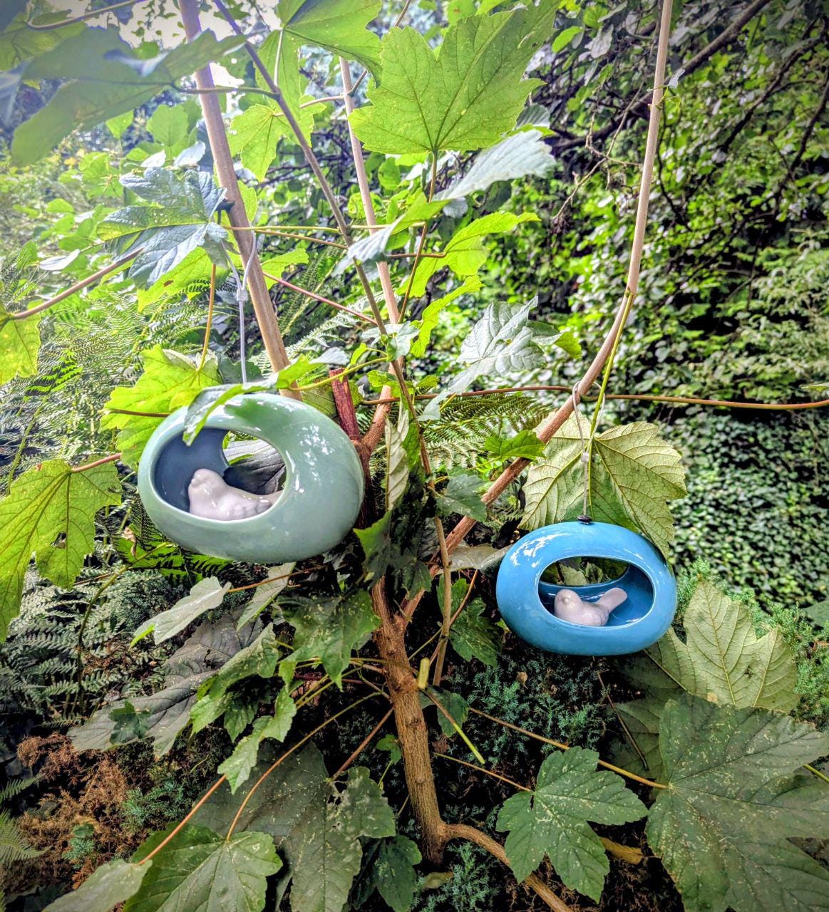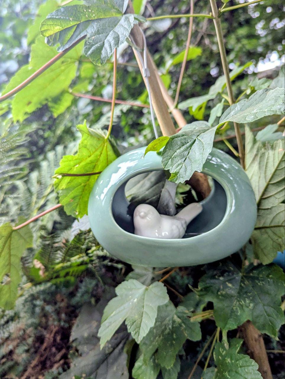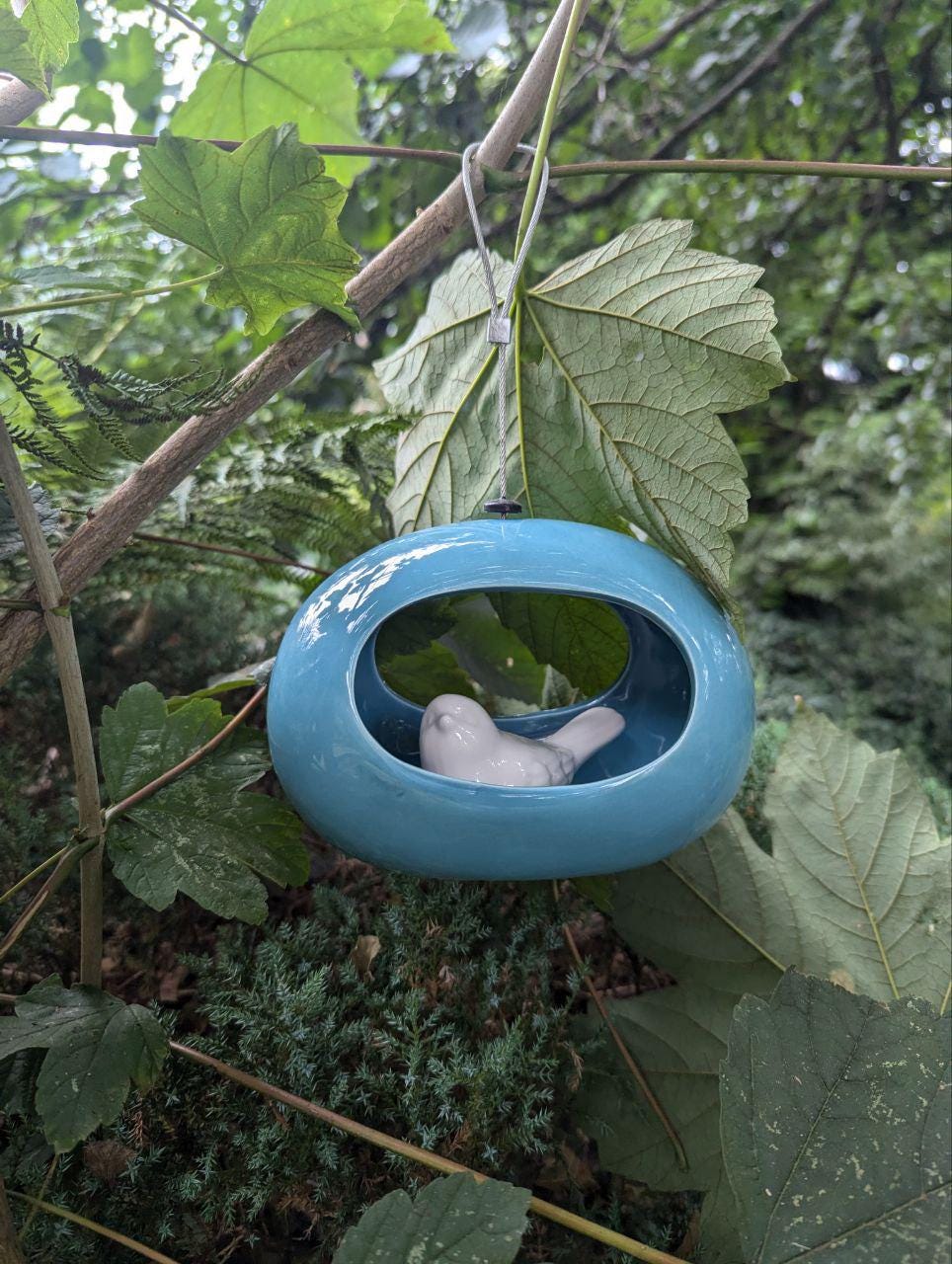 hanging birdhouse/watering place ceramic green or blue bird decoration, garden decoration, birdhouse, bird fountain Bird