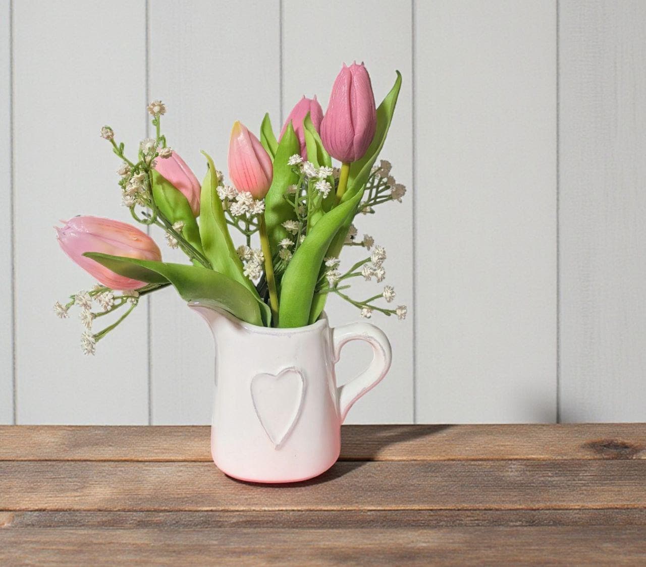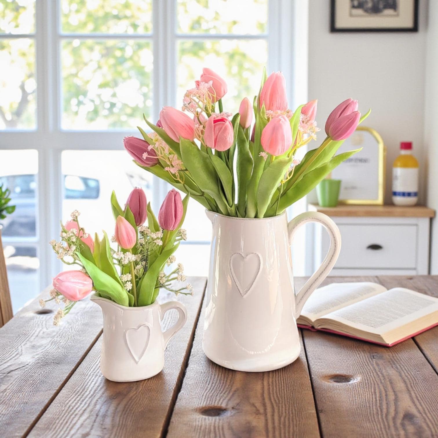 This beautifully handcrafted ceramic jug in white or beige captivates with its delicate heart motif and is a true gem for any interior. Whether as a stylish vase for flowers, as a milk jug in the kitchen, or for other purposes – this jug is a versatile and charming accessory that is an absolute must-have in any country house interior.
