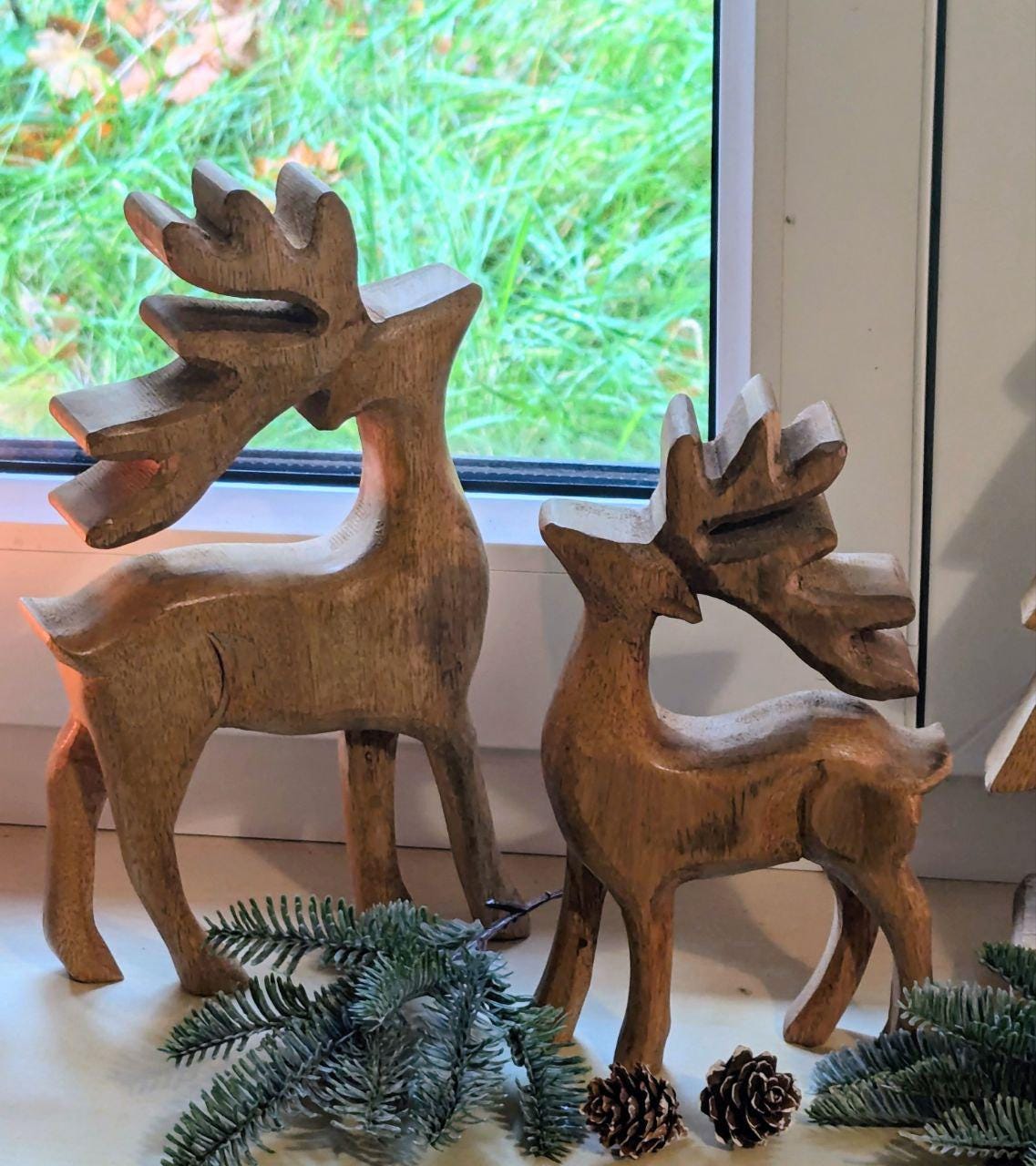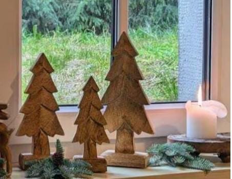 To complement this, you can choose between two reindeer in two sizes or three Christmas trees in three sizes – all crafted from high-quality mango wood. The fine handwork and natural grain make each piece unique. Furniture-friendly felt pads on the bottom ensure that the figures can be placed anywhere without leaving marks.