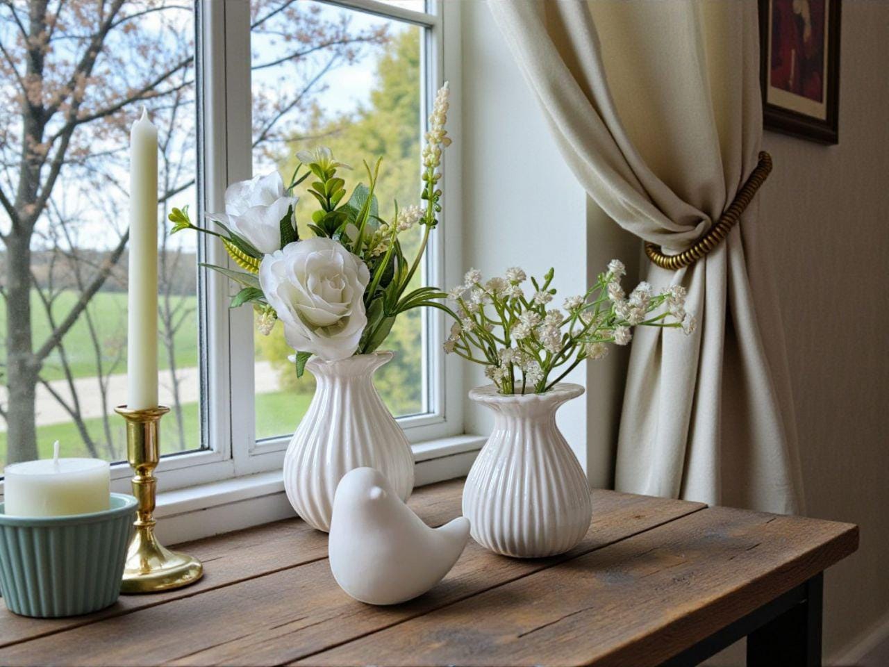 Flower vase, white ceramic, Scandinavian style, in 2 sizes