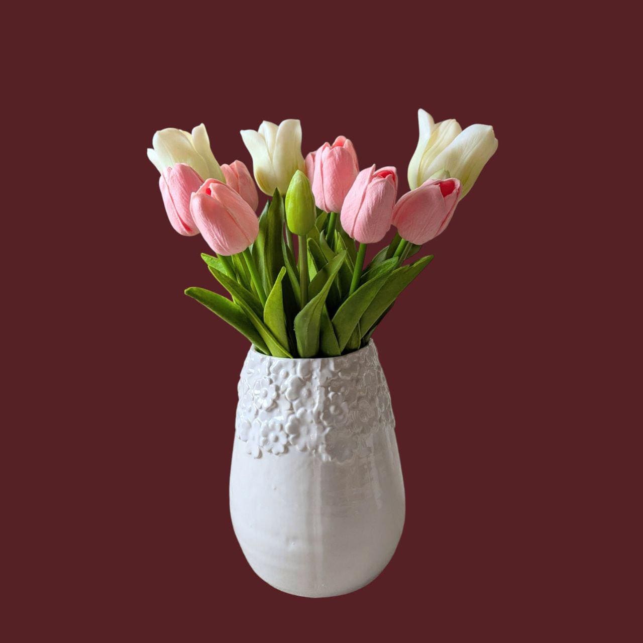 The ceramic plant pot/vase with decorative white floral rim impresses with its timeless elegance and high-quality craftsmanship.