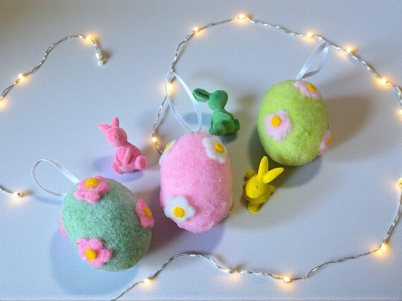 Set of 3 felt eggs in three colors, plush eggs, Easter, Easter decorations, Easter table decorations