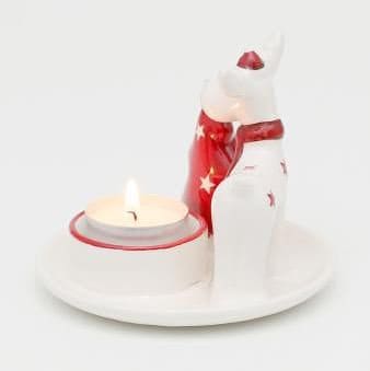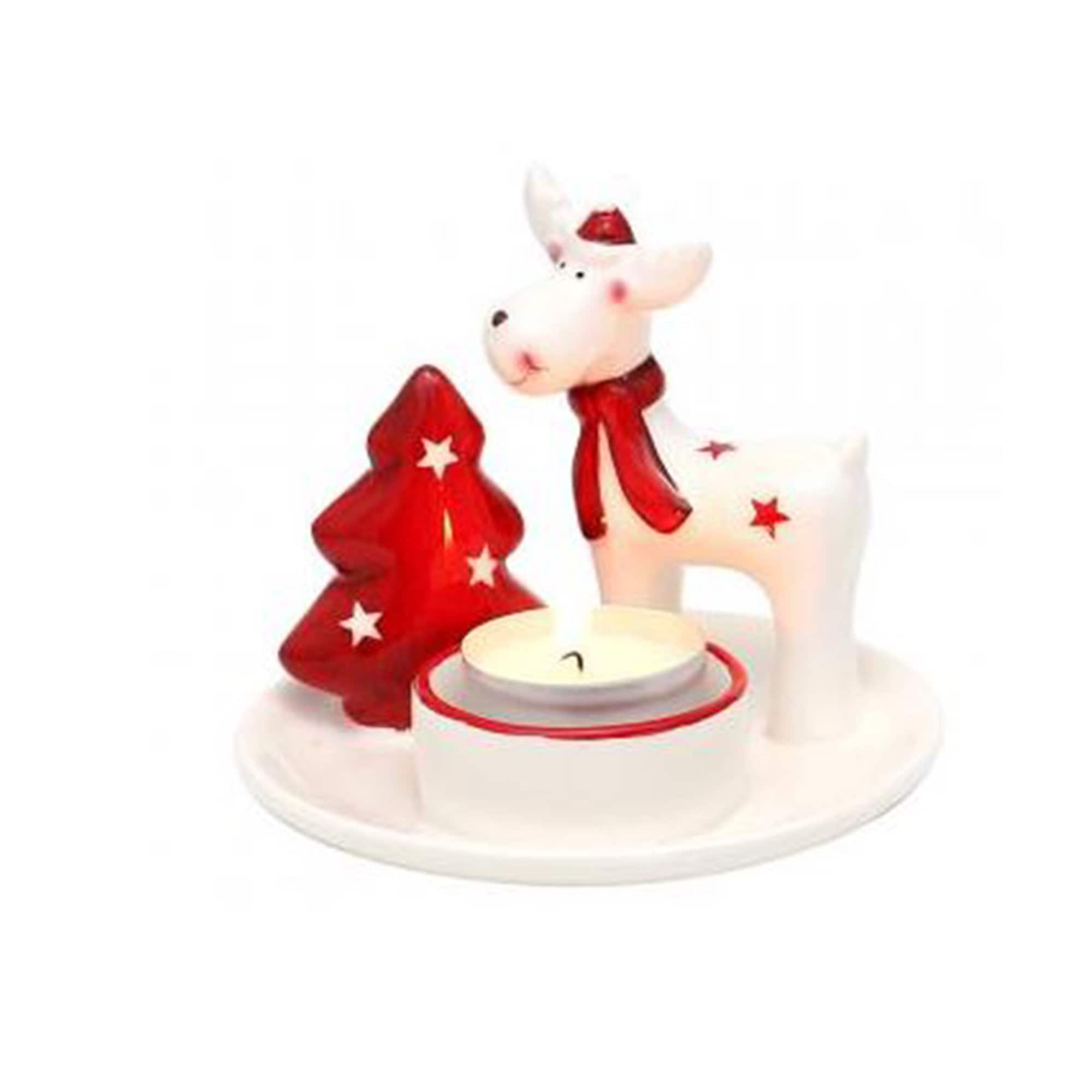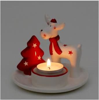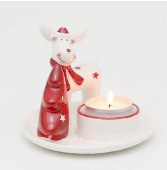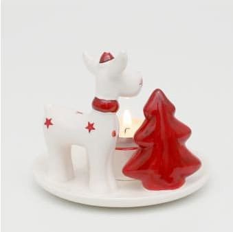 Sweet handmade tealight plate with reindeer and tree glazed white/red suitable for Christmas time