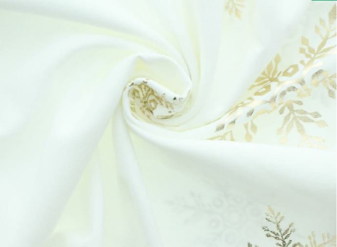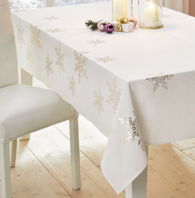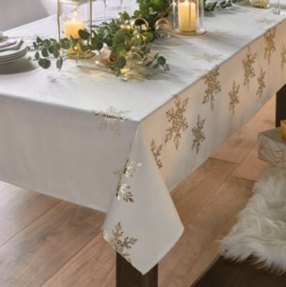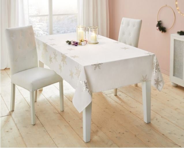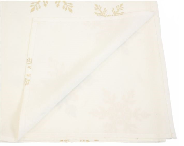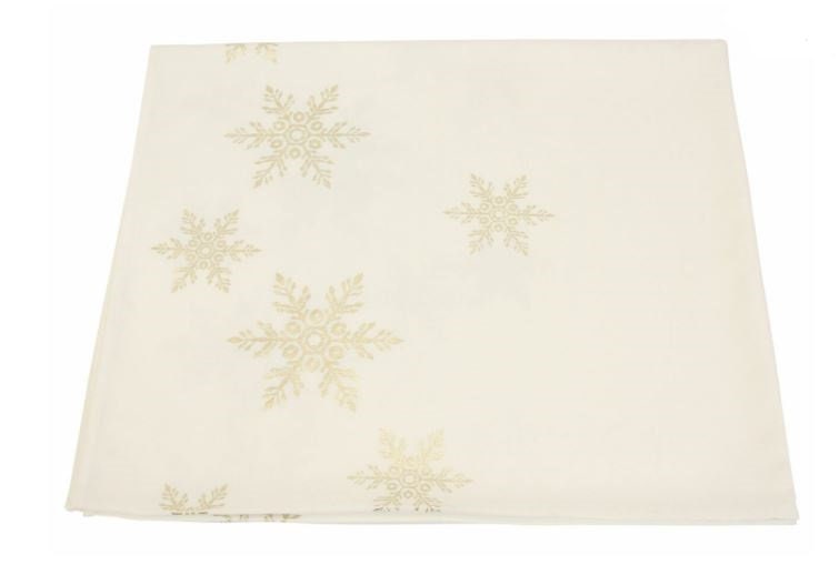 noble tablecloth with cream-white basic fabric, golden snowflake print made of 100 % polyester