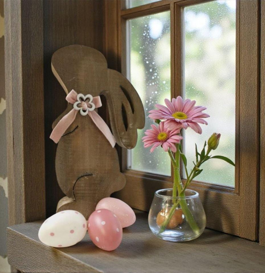 cute wooden decoration in the shape of a bunny all in natural colour, suitable for any interior and a must...